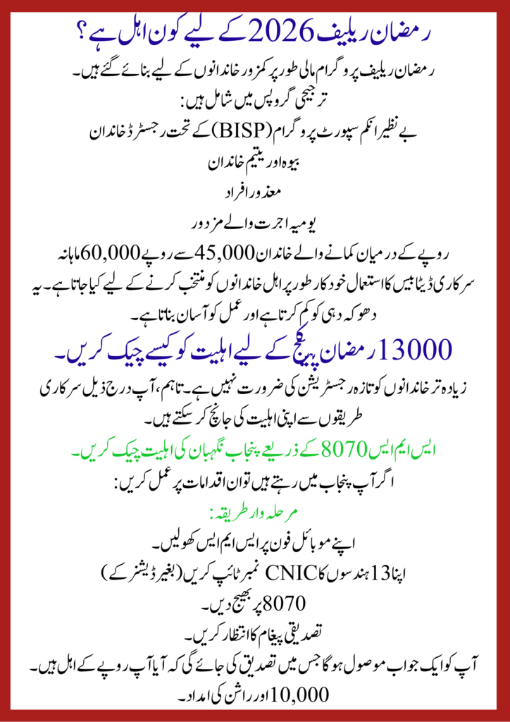How to Check Eligibility for 13000 Ramzan Package