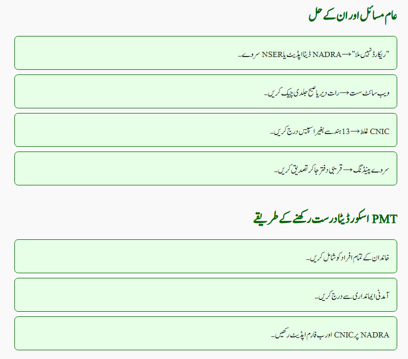 • No Record Found → Update your NADRA data or complete the NSER survey.