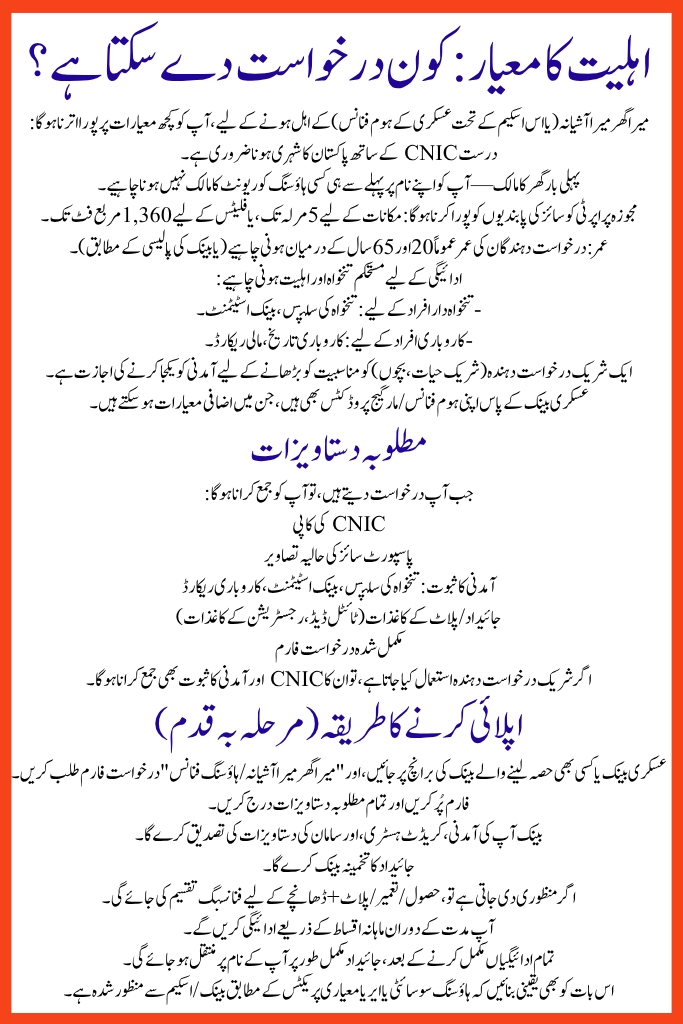 To be eligible for Askari Bank Mera Ghar Mera Ashiana Scheme, you must meet certain criteria: