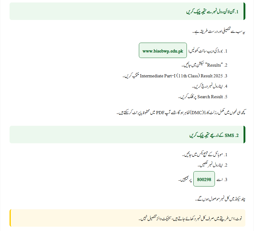 | Online by Roll No. | Enter roll number on website | www.bisebwp.edu.pk |