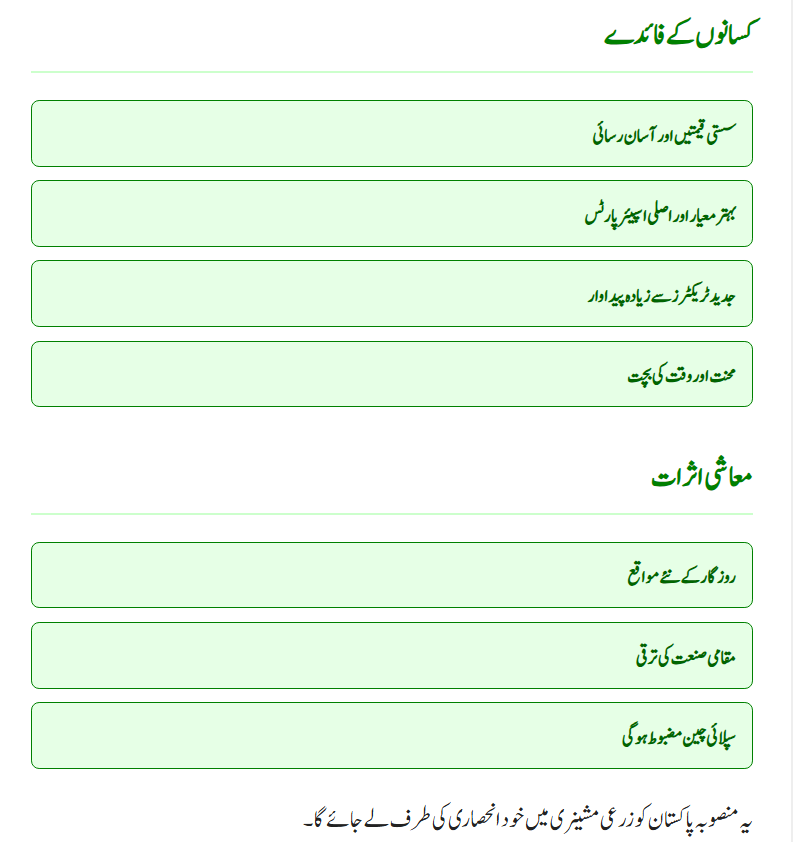 By assembling tractors within Pakistan, the country will save millions in foreign exchange and develop local manufacturing capacity.