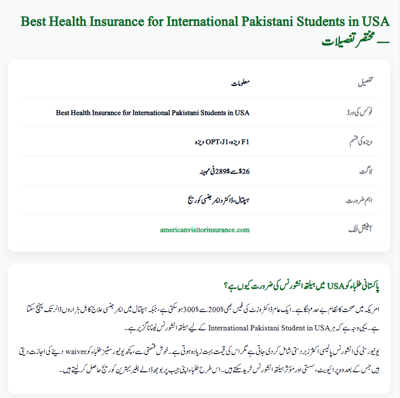 | Focus Keyword | Best Health Insurance for International Pakistani Students in USA |