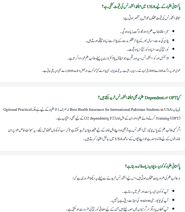 FAQs – Best Health Insurance for International Pakistani Students in USA