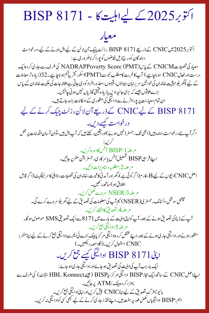 Eligibility Criteria for BISP 8171 – Oct 2025