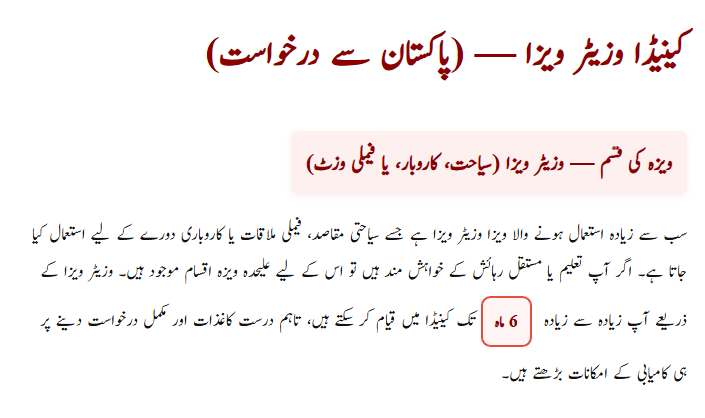The most common visa for Pakistani applicants is the Visitor Visa. It is used for tourism, meeting family members, or short business trips. This visa allows you to stay in Canada for up to six months. However, if your goal is higher education or permanent residency, you will need to apply under different categories. For most travelers in 2026, the Visitor Visa is the easiest and fastest option.