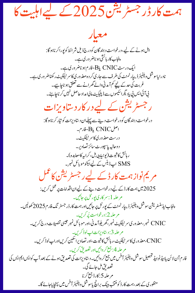 Eligibility Criteria for Himmat Card Registration 2025