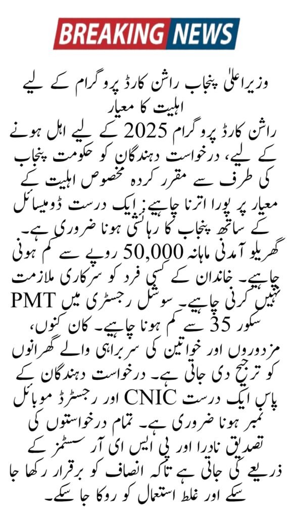 To qualify for the Ration Card Program 2025, applicants must meet specific eligibility criteria set by the Government of Punjab: