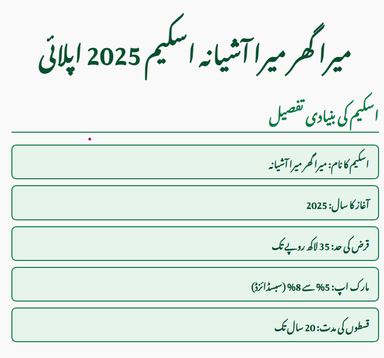 The Myra Ghar Mera Ashiana Scheme 2025 Apply program is a life-changing opportunity for low- and middle-income families in Pakistan. With subsidized loans, reduced markup, and long repayment terms, it makes homeownership possible for thousands of people. October 2025 is the best time to apply—don’t miss this golden chance. Secure your dream home today and give your family a permanent roof of their own.