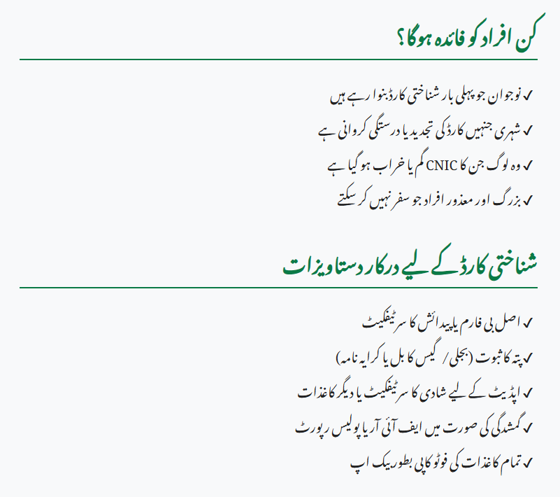 - Those who lost or damaged their CNIC and need a duplicate.