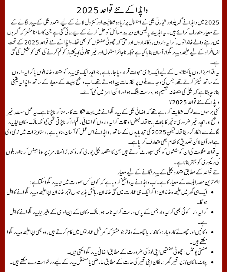 Latest Update: New Criteria for Installing Multiple Electricity Meters – WAPDA Rules 2025