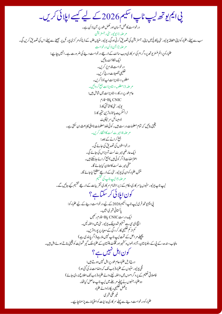 The revised New Eligibility Criteria Announced for PM Youth Free Laptop Scheme 2026 show the government’s commitment to digital education and transparency. By expanding eligibility to BS, Master’s, MPhil, and PhD students and introducing stronger verification methods, the scheme ensures that deserving students receive support.