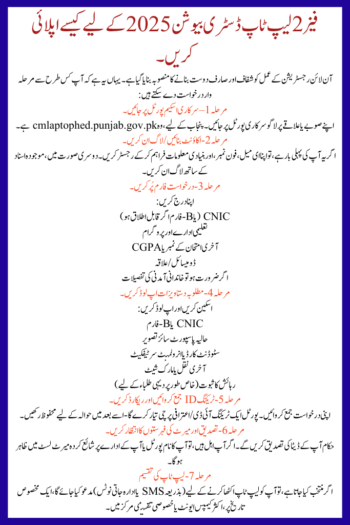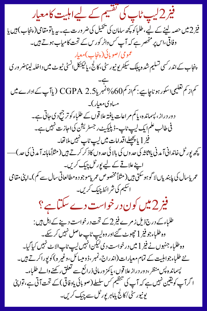 - CM Punjab Laptop Scheme Portal: The CM Laptop arrangement website confirms that Phase 2 registration is ongoing, and students should keep track via cmlaptophed.punjab.gov.pk.