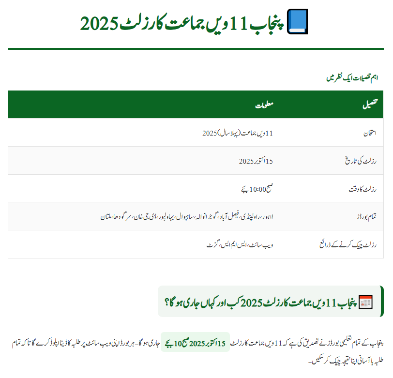 All Punjab boards have officially confirmed that the Punjab 11th Class Result 2025 will be released on October 15, 2025, at 10:00 AM.