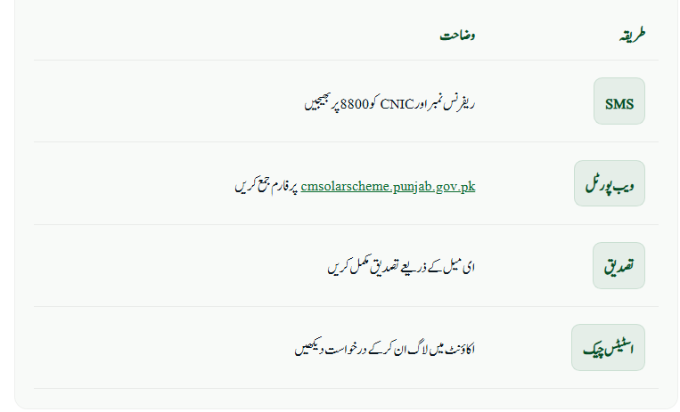 | Online Portal | Fill the form at cmsolarscheme.punjab.gov.pk |