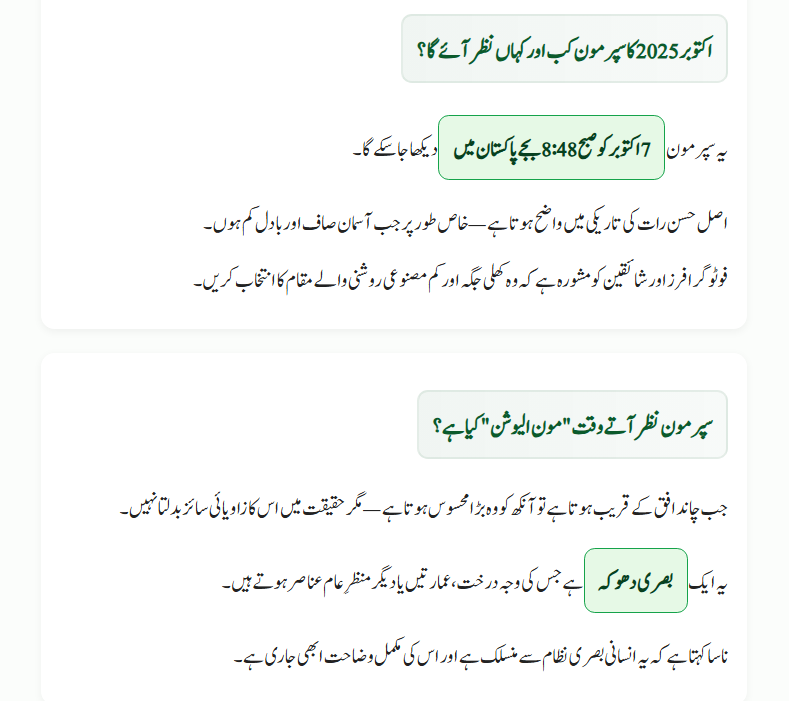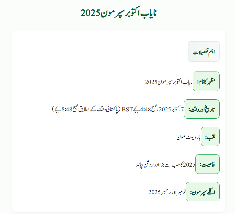 The October Supermoon will peak on 7 October 2025 at 4:48 AM BST (or 8:48 AM in Pakistan). While the moon is visible during the day too, the best experience is at night when the skies are dark and clear.