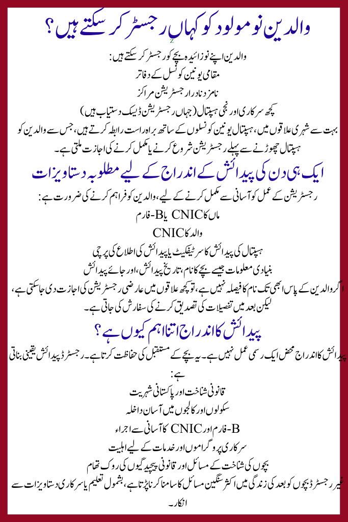 Same-day birth registration in Pakistan is a major step forward in protecting children’s rights and supporting families. Parents should take full advantage of this facility and register their newborn immediately after birth. It is quick, reliable, and essential for a child’s secure future.