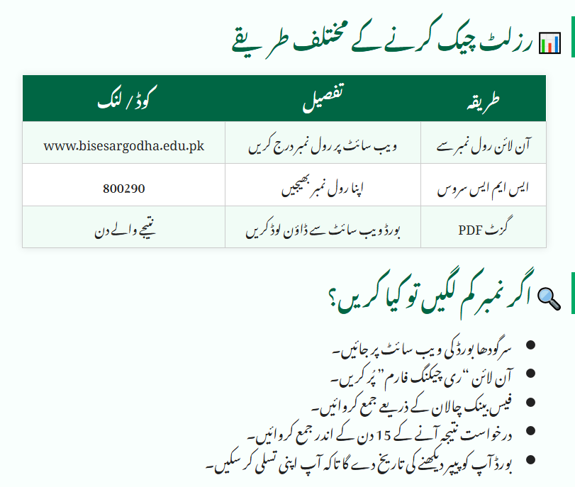 | Online by Roll Number | Enter roll number on website | www.bisesargodha.edu.pk |