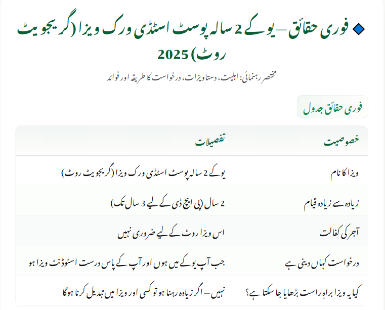 The UK 2-Year Post Study Work Visa 2025 is a valuable bridge between student life and professional life in one of the world’s most dynamic economies. It offers freedom, opportunity and time — all key to launching a meaningful career. If you’ve just finished your UK studies, this visa gives you the space to plan, act and build your future.